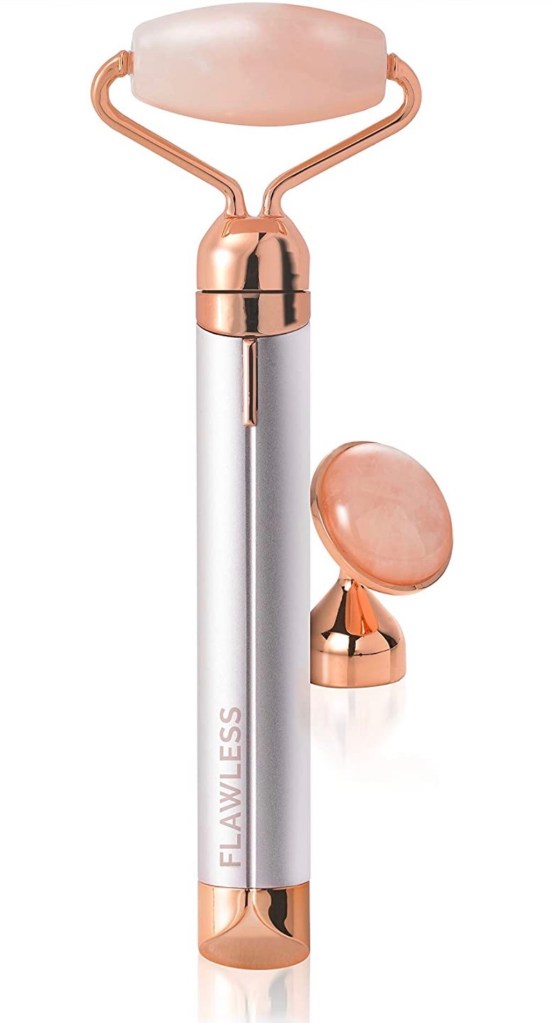 Numero tres: A vibrating face roller made from rose-quartz brought to you by the brand Finishing Touch. This is not a super lux brand by any means as it is only $12-19, but it is nonetheless well-known since it has one of the highest ratings on Amazon with over 11,000 reviews! I’ll keep this review short and sweet, but first: let me set up the narrative for you on how a random thing such as a facial roller makes sense in this world. Hear me out.