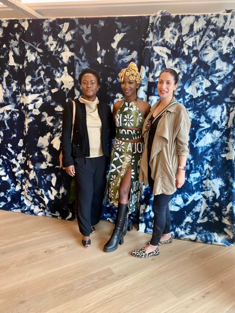 For the fourth day, I was eagerly anticipating the streetwear collection by London-based Abigail Ajobi, which inspired me to dress comfortably in an oversized military green trench-style coat, paired with an all-black camisole and leggings ensemble, complemented by a berry-purple Chanel lipstick. Similar to the previous afternoon show I attended, this was another captivating fashion capsule collection. The Ajobi capsule celebrated prints and colors inspired by her Nigerian heritage through her lux streetwear looks. Her brand of sustainability is not only exemplified in the materials used but also in the fact that she gives a portion of her profits to specific charities.