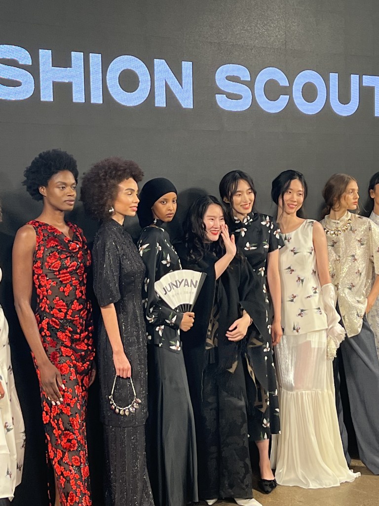 We arrived to the Fashion Scout venue and ran into the other group of folks who had just left the Prophetik show as well. It turns out there were a lot of Americans in the group visiting from New York or who were already living in London as students of fashion. As a group, we got into the show and was able to catch the tail end of the Junyang’s “Dream in the Garden” collection, which featured formal and elegant wear that integrated aspects of the designer’s Chinese culture and traditional garments.