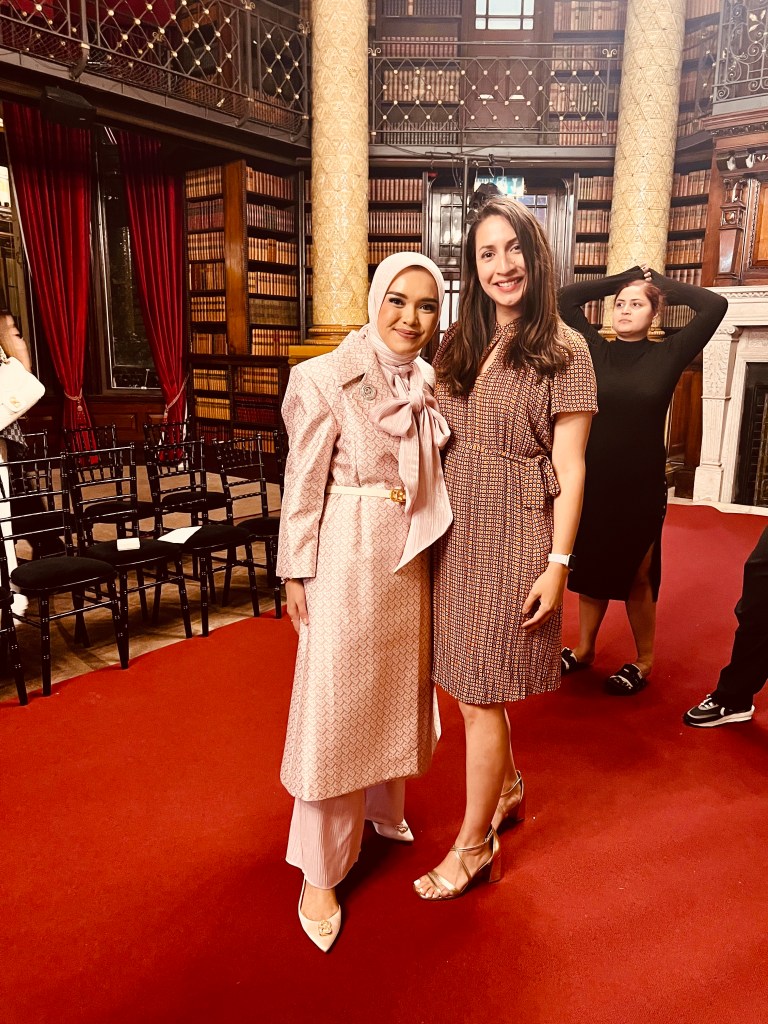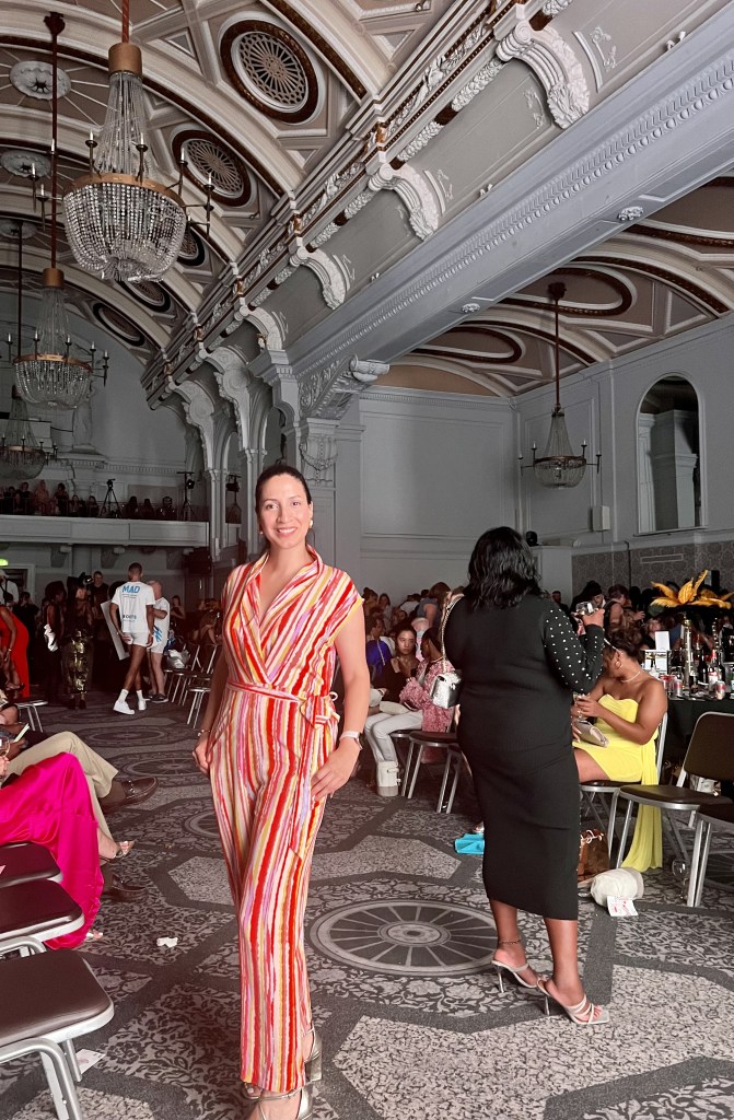 For my penultimate LFW day, I made plans to attend the Indonesia Now Fashion event at the Indonesian Embassy, a beautiful building located near the Strand. Before the show, I met up with Dhosjan to have a meal at the famous Dishoon restaurant in the Covent Garden district. There, we savored Indian cuisine with a modern twist. I was not only impressed with the food, but also with the warm and inviting ambiance, making it a perfect place to connect with new friends before heading to the show. Later, we took an Uber to the Indonesia Now show and met up with my friend Vita who was as fabulously dressed as the first day I met her.