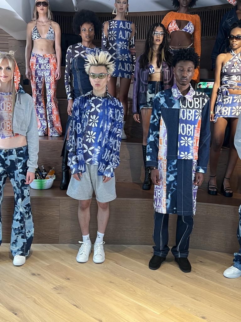 Upon arriving at the studio, I was surrounded by people dressed in striking outfits that made my tourist streetwear pale in comparison. Consequently, I knew that my purpose was to admire and observe rather than seek attention, although I did manage to capture a photo with the designer herself. Encouraged by the welcoming atmosphere, I eagerly sampled the signature cocktail and mingled with the fabulous crowd. Little did I know, this is where I would meet another new friend at London Fashion Week—Dhosjan, a woman who ordered the same drink and immediately bonded with me over its deliciousness and our shared enthusiasm for the streetwear capsule collection.