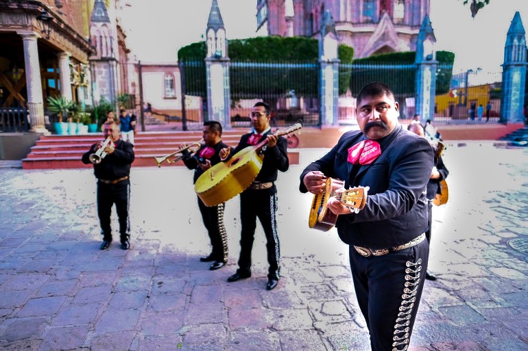 You will find yourself time and time again gravitating toward the town center/main plaza. It’s a lively plaza not only because of the Mojigangas and the view of the pastel pink church, but also for the Mariachi music that you will hear during the day and in the evening. Many people sit on the benches for hours just to listen to the Mariachi play the classic mariachi songs. I actually love Mariachi music so I asked them to play the classic song “Guadalajara.” Manuel took a cool photo of the Mariachi quartet playing and you can see them play with their classic outfits. If you want to get some requests in for your song, don’t forget to bring some extra cash.