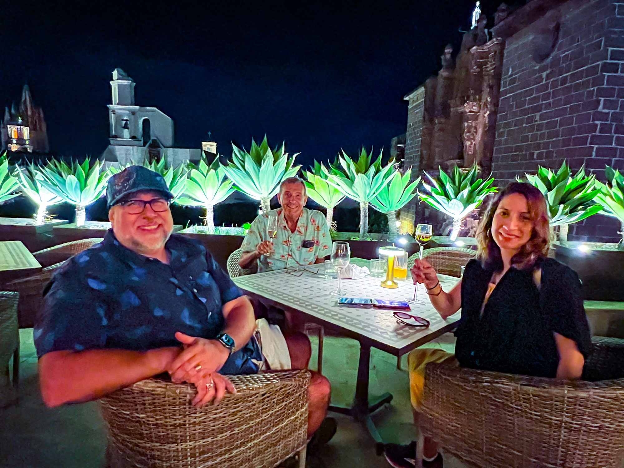 Luckily we were traveling with Jennifer and Manuel’s uncle Greg who had some great recommendations for rooftop bars. He introduced us to Fatima 7 which happens to have one of the best views of SMDA and of the Church Iglesia de San Francisco. You will see a breathtaking view of the sunset and at one point we actually saw a flash of lighting. We are in the highlands after all. The food was delicious and we enjoyed a nice sip of refined tequila as a night cap–it was “que fancy” as they like to say! We definitely recommend this restaurant in the evening for the dramatic views of the sierra and church.
