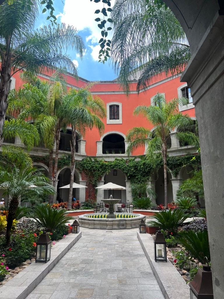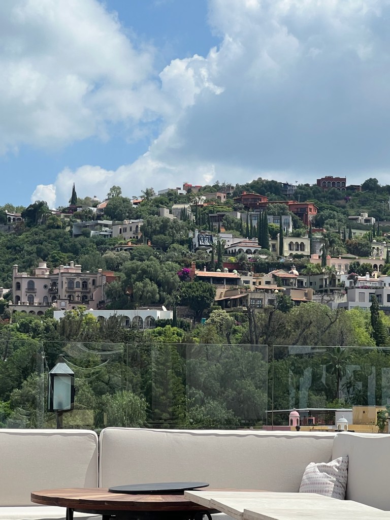 So why on Earth would we go there? Because it turns out that the Rosewood San Miguel is housed in one of the biggest and oldest renovated 16th century Haciendas in town. The Hacienda sits on a five-acre property, featuring lush gardens and grounds, architectural designs, and an amazing rooftop restaurant overlooking the valley. How could we not go?! Click on the slideshow below to see a few photos of the view.