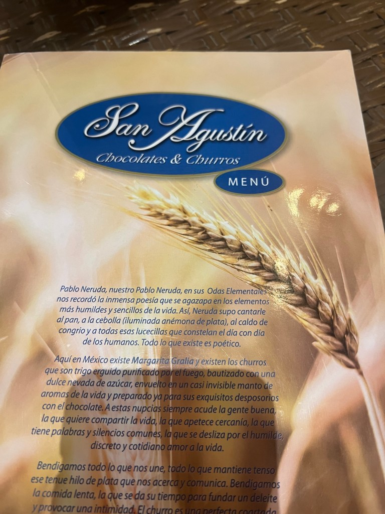 How can you be in Mexico and not have churros? This is the question I asked myself after a full dinner. I really didn’t need them, but did I want them? Yes. Well, just across the Fatima restaurant you’ll find the most popular spot for churros: San Agustin Chocolates & Churros. There are plenty of tables for your party and an attentive waiter will be there to take your oder of Churros and hot chocolate. You can have your churro the classic way (without the filling) or with chocolate, Nutella, creme and strawberry. You can’t go wrong with any of these choices and I highly recommend splitting an order of Churros since three is more than enough–especially after dinner.