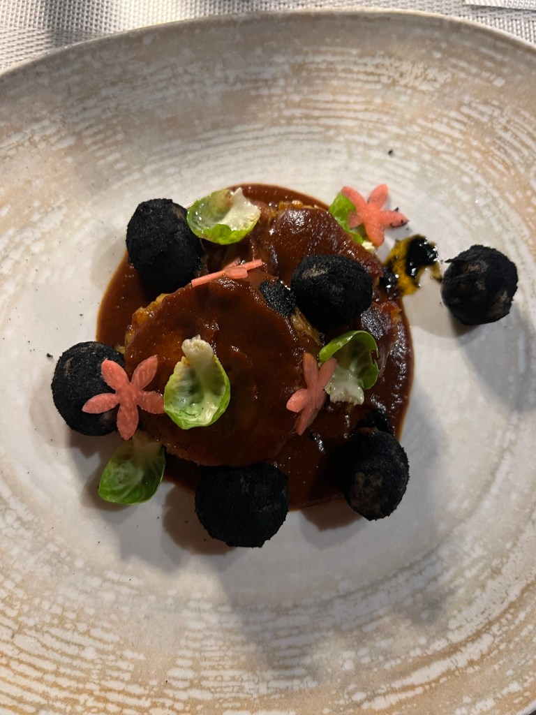 In San Miguel de Allende, there is traditional food a plenty but traveling is also about trying something new–the unexpected. For that reason, we decided to end our last night in SMDA with dinner at Moxi–what is considered to be one of the top restaurants in town and is located in Hotel Matilda, deemed by Condé Nast as one of the best hotels in Mexico. Moxi’s chef is Vicente Torres whose is an ward-wnning chef and is also no stranger to the Mexico City fine dining scene. Indeed, his Ciudad de Mexico establishment Garum is considered to be one of the best restaurants in the city, applauded for the chef’s use of local, fresh, and sustainable ingredients for his Mediterranean-inspired creations. You’ll find the same Mediterranean flair in Moxi as well while also paying homage to the delicacies of the Guanajuato/Querétaro area, including the slow-cooked pork shank enveloped in Chipotle and Achiato sauce called Chamorro en adobo pictured below. If you crave dishes more on the lighter side, I highly recommend the standout seafood and ceviche-type dish called Aguachile de Cangrejo–crab cured in the most delicious tangerine-meets-chili water concoction I have ever tasted. They serve this with crispy tostadas. Finally, the desserts were a must and with these restaurants you indulge with each course. I recommend the breaded pineapple slices with ice cream or the deconstructed chocolate brownie delight.